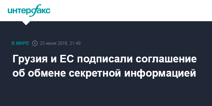 Москва. 23 июня. INTERFAX.RU - Грузия и Евросоюз в четверг подписали соглашение "Об обмене секретной информацией и необходимых для ее защиты процедурах безопасности".
