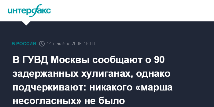 В ГУВД Москвы сообщают о 90 задержанных хулиганах, однако подчеркивают: никакого «марша несогласных» не было