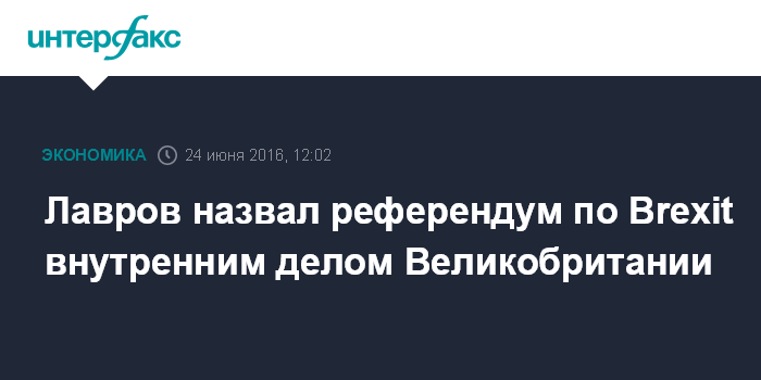 Москва. 24 июня. INTERFAX.RU - Глава МИД РФ Сергей Лавров назвал внутренним делом народов Великобритании исход референдума по Brexit.