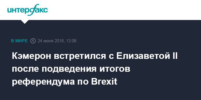 Кэмерон встретился с Елизаветой II после подведения итогов референдума по Brexit
