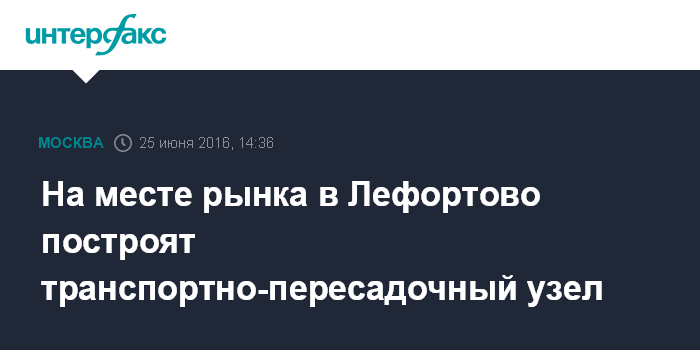 Москва. 25 июня. INTERFAX.RU - Лефортовский рынок будет снесен в ближайшие два-три месяца для строительства транспортно-пересадочного узла, сообщил журналистам в субботу заместитель мэра Москвы по вопросам градостроительной политики и строительства Марат Хуснуллин.