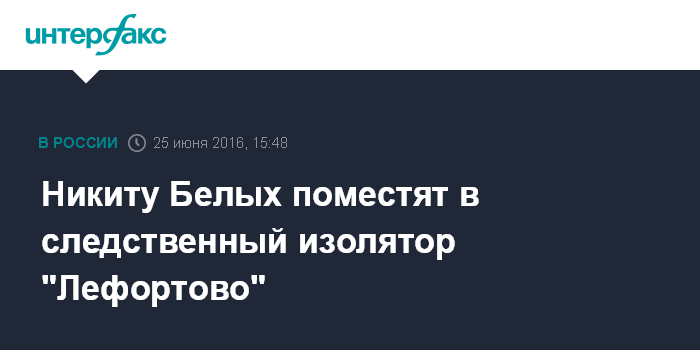 Москва. 25 июня. INTERFAX.RU - Кировский губернатор Никита Белых, обвиняемый в получении взятки в особо крупном размере, будет находиться под арестом в следственном изоляторе "Лефортово", сообщил "Интерфаксу" в субботу источник, знакомый с ситуацией.