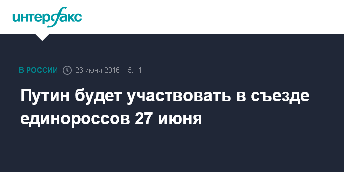 Путин будет участвовать в съезде единороссов 27 июня