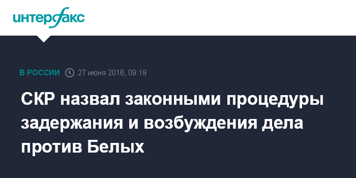 СКР назвал законными процедуры задержания и возбуждения дела против Белых