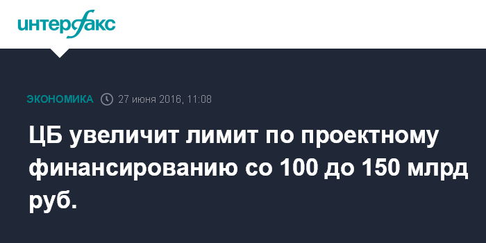 ЦБ увеличит лимит по проектному финансированию со 100 до 150 млрд руб.