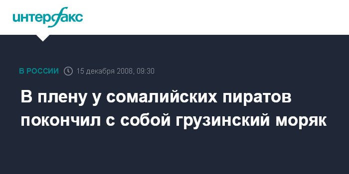 Москва. 15 декабря. INTERFAX.RU - Один из членов экипажа греческого судна "Экшн", которое было освобождено несколько дней назад, умер, еще находясь в плену у сомалийских пиратов, сообщили в понедельник грузинские СМИ.