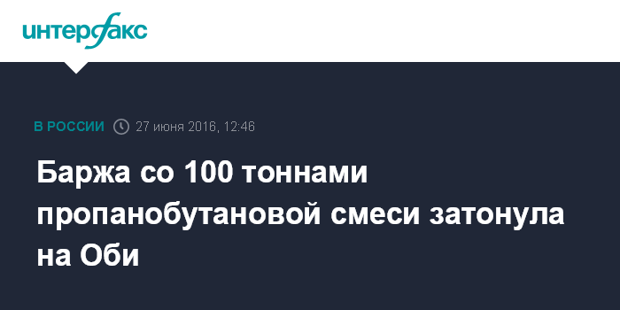 Москва. 27 июня. INTERFAX.RU - Баржа, перевозившая пропанобутановую смесь, пошла на дно на реке Обь в Чаинском районе Томской области, сообщил в понедельник агентству "Интерфакс" начальник томского линейного отдела обского управления Госречнадзора Федеральной службы по надзору в сфере транспорта Валерий Ермаков.