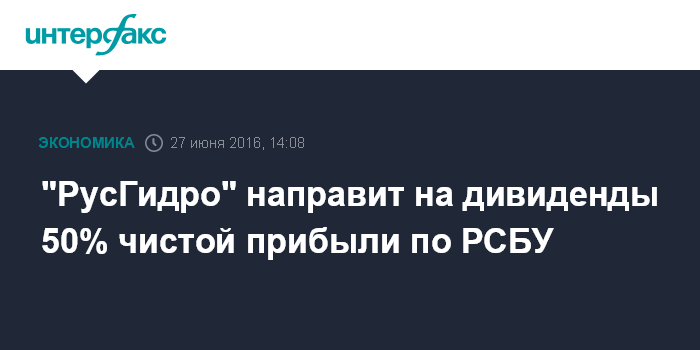 "РусГидро" направит на дивиденды 50% чистой прибыли по РСБУ