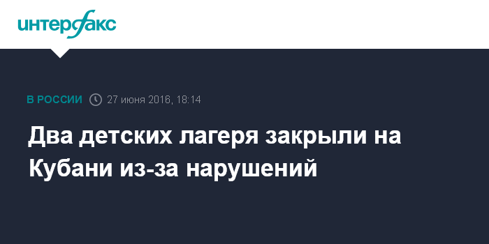 Москва. 27 июня. INTERFAX.RU - Прекращена работа двух детских лагерей отдыха в Краснодарском крае, находившиеся в них дети отправлены по домам, сообщила пресс-служба краевой прокуратуры в понедельник.