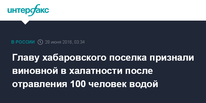 Москва. 28 июня. INTERFAX.RU - Суд вынес приговор главе поселка Многовершинный в Хабаровском крае, где из-за вспышки кишечной инфекции в мае 2015 года пострадало более 100 человек, сообщает региональное СУ СК РФ.
