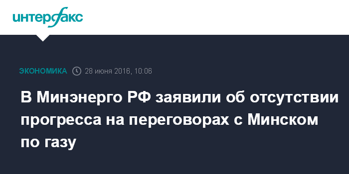 Москва. 28 июня. INTERFAX.RU - Россия продолжает переговоры с Белоруссией по газовому вопросу продолжаются, пока ничего нового, сообщил журналистам глава Минэнерго РФ Александр Новак.