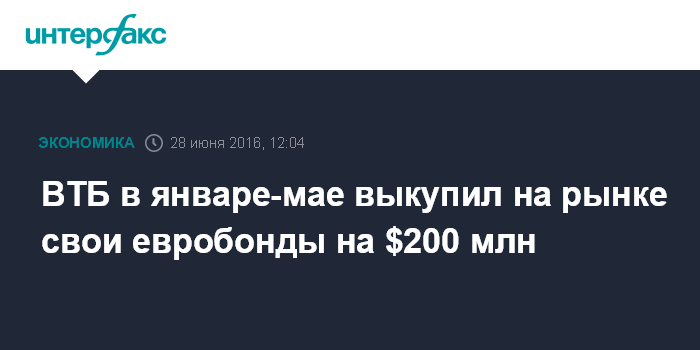 ВТБ в январе-мае выкупил на рынке свои евробонды на $200 млн