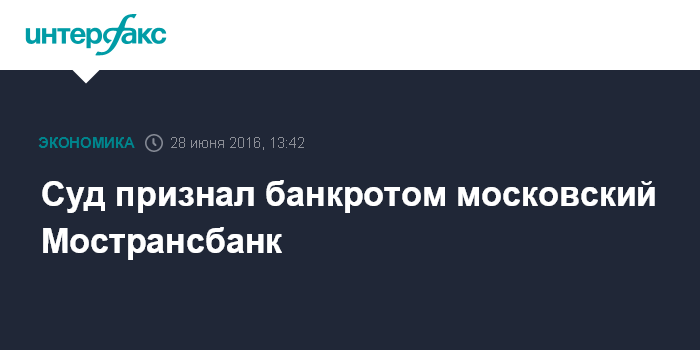 Москва. 28 июня. INTERFAX.RU - Арбитражный суд Москвы во вторник удовлетворил заявление Банка России о признании несостоятельным (банкротом) московского Мострансбанка.