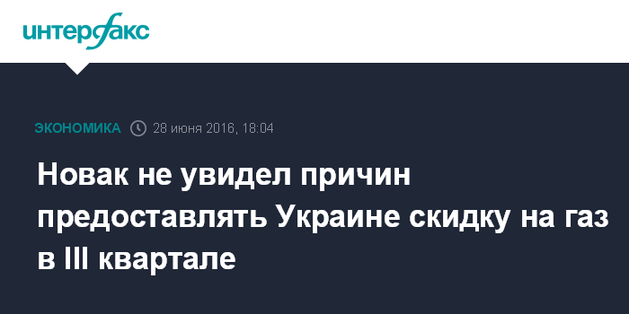 Москва. 28 июня. INTERFAX.RU - Цена на газ для Украины в третьем квартале, по предварительным оценкам, будет не выше рыночной, что не потребует предоставления скидок, сообщил министр энергетики РФ Александр Новак в интервью телеканалу "Россия-24" (ВГТРК).
