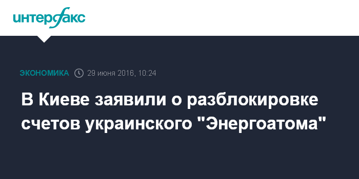 Москва. 29 июня. INTERFAX.RU - Счета госпредприятия "НАЭК "Энергоатом", арестованные еще в марте этого года, разблокированы, сообщил министр энергетики и угольной промышленности Игорь Насалик.