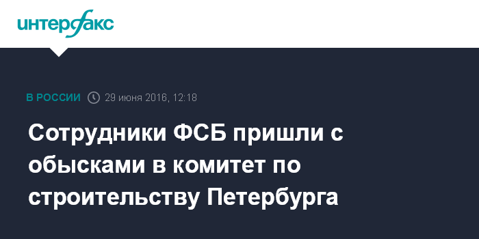 Москва. 29 июня. INTERFAX.RU - Сотрудники управления ФСБ по Санкт-Петербургу и Ленинградской области проводят в среду обыски в городском комитете по строительству, сообщили "Интерфаксу" в пресс-службе ведомства.