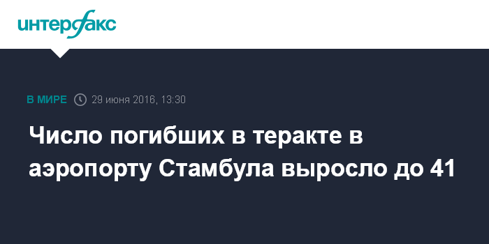 Число погибших в теракте в аэропорту Стамбула выросло до 41