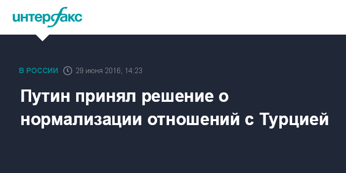 "Российский лидер заявил, что поручит правительству вступить в переговоры с соответствующими турецкими ведомствами с тем, чтобы восстановить взаимовыгодное двустороннее сотрудничество в торгово-экономической и других сферах. Также отмечено, что имеется в виду снять ограничительные меры относительно посещения Турции российскими туристами", - говорится в сообщении пресс-службы Кремля.