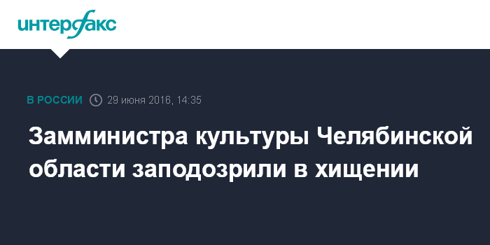 Москва. 29 июня. INTERFAX.RU - Заместитель министра культуры Челябинской области Яна Комиссарова задержана накануне по подозрению в хищении денег из бюджета, сообщил "Интерфаксу" источник, знакомый с ситуацией.