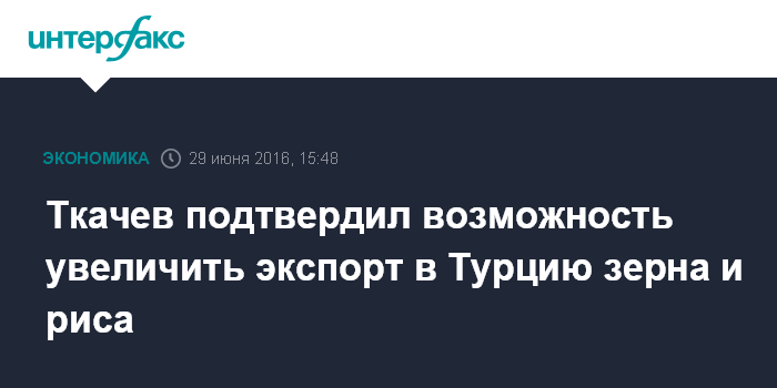Москва. 29 июня. INTERFAX.RU - Россия при желании турецкой стороны готова увеличить поставки в эту страну зерна и риса, заявил журналистам министр сельского хозяйства РФ Александр Ткачев