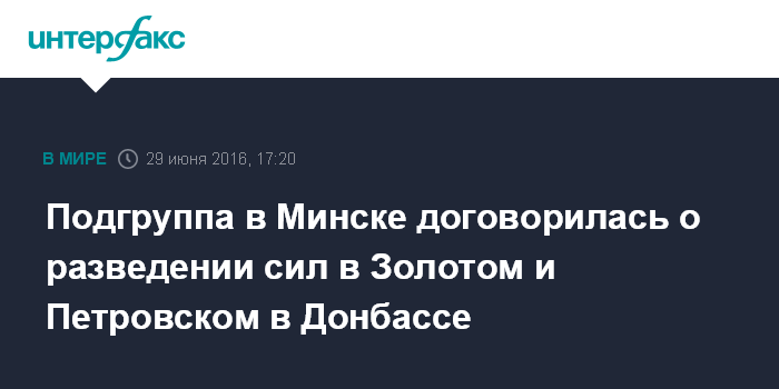 "Подгруппа по безопасности продолжила рассмотрение вопросов, затронутых в ходе видеоконференции 24 июня. Это касалось разведения сил и средств на линии соприкосновения. Я рад сообщить, что достигнут существенный прогресс - в частности, стороны договорились о разведении сил и средств в двух местах - это касается населенных пунктов Золотое и Петровское", - сказал Сайдик.