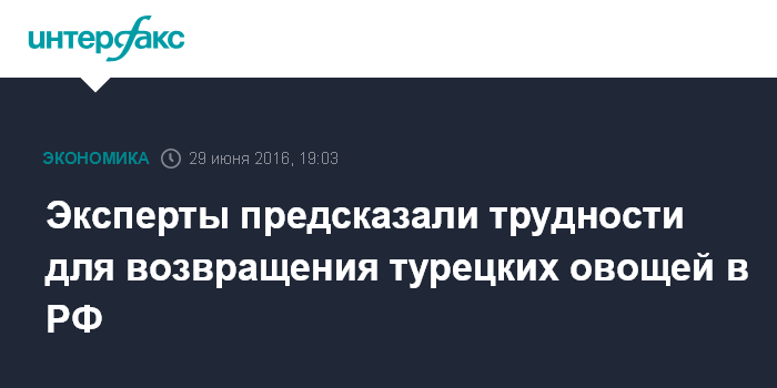 На этот фактор обратил внимание и президент Национального союза производителей овощей Сергей Королев. "К качеству и безопасности турецкой продукции всегда были вопросы, поэтому нужны жесткие требования к ней при возвращении на российский рынок, как, впрочем, и к продукции из других стран", - заявил он.