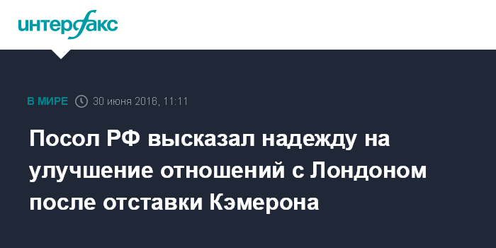 Посол РФ высказал надежду на улучшение отношений с Лондоном после отставки Кэмерона