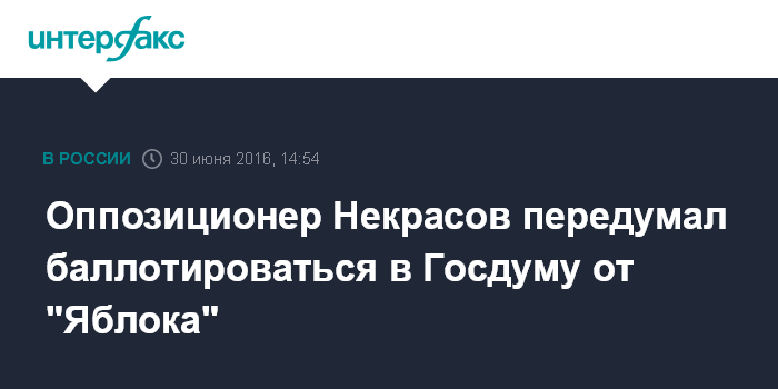 Оппозиционер Некрасов передумал баллотироваться в Госдуму от "Яблока"