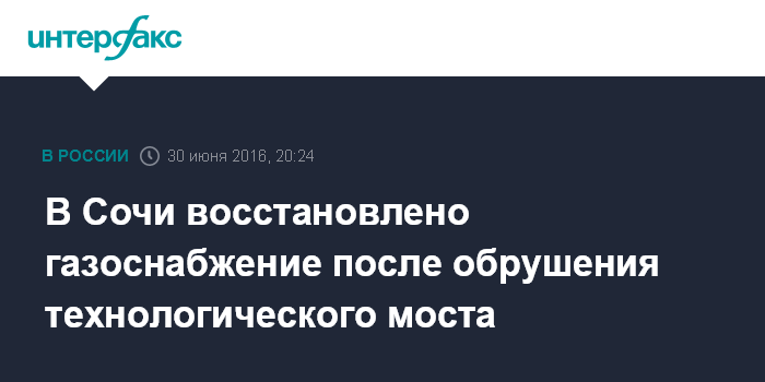 В Сочи восстановлено газоснабжение после обрушения технологического моста