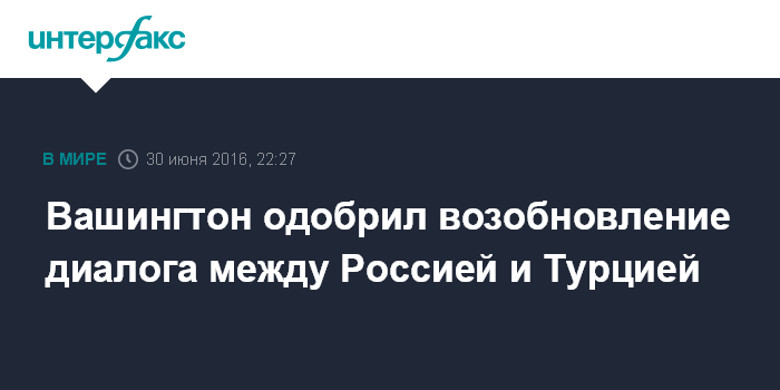 Вашингтон одобрил возобновление диалога между Россией и Турцией