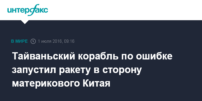 Тайваньский корабль по ошибке запустил ракету в сторону материкового Китая