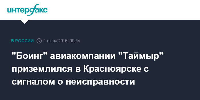 "Боинг" авиакомпании "Таймыр" приземлился в Красноярске с сигналом о неисправности