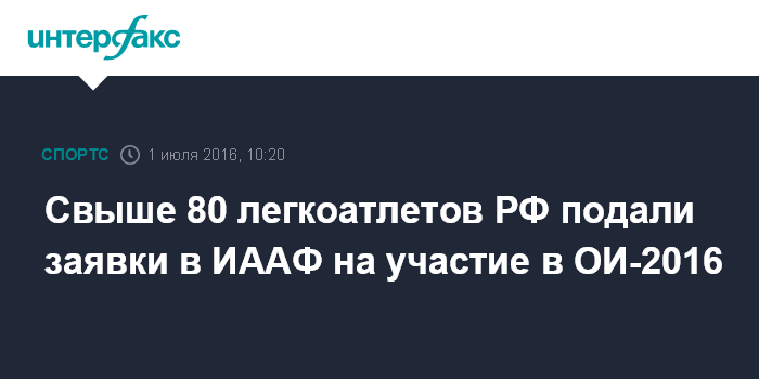Москва. 1 июля. INTERFAX.RU - Международная легкоатлетическая ассоциация (ИААФ) получила более 80 заявок российских легкоатлетов на участие в Олимпийских играх в Рио-де-Жанейро, сообщили "Интерфаксу" в пресс-службе ИААФ.