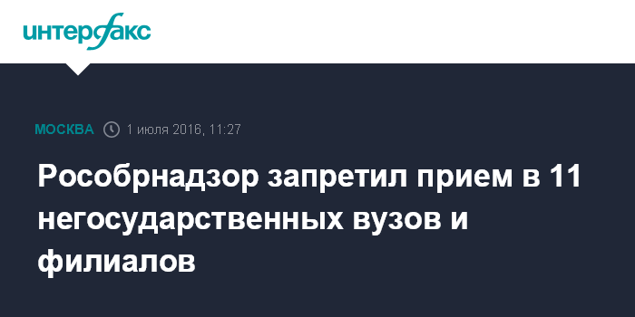 Москва. 1 июля. INTERFAX.RU - Рособрнадзор за неделю запретил прием в 11 негосударственных вузов и филиалов, сообщает в пятницу пресс-служба ведомства.