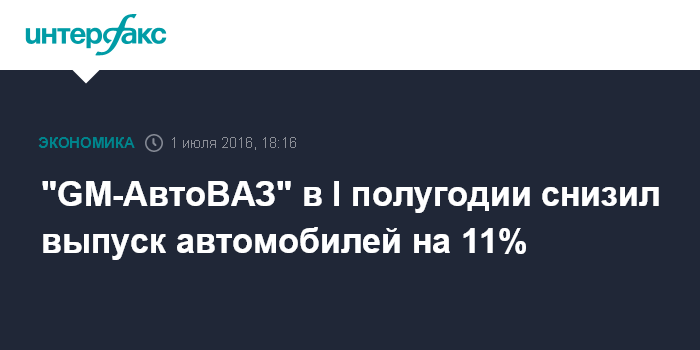 Москва. 1 июля. INTERFAX.RU - В январе-июне 2016 года "GM-АвтоВАЗ", совместное предприятие ОАО "АвтоВАЗ" и General Motors в Тольятти, произвело 16,961 тыс. автомобилей, говорится в сообщении пресс-службы СП.