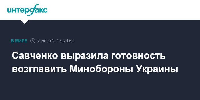 Москва. 2 июля. INTERFAX.RU - Народный депутат Украины от фракции "Батькивщина" Надежда Савченко заявляет о готовности возглавить отечественное оборонное ведомство.