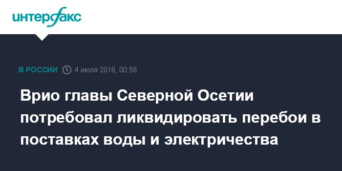Врио главы Северной Осетии потребовал ликвидировать перебои в поставках воды и электричества