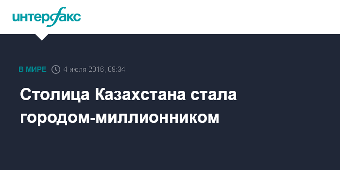 Москва. 4 июля. INTERFAX.RU - Население столицы Казахстана Астаны достигло 1 млн человек.