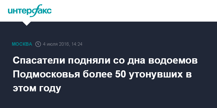 Москва. 4 июля. INTERFAX.RU - В Подмосковье утонуло не намного меньше людей в первом полугодии 2016 года, чем за весь прошлогодний период, сообщил начальник водолазной службы ГКУ Московской области "Мособлпожспас" Алексей Степин журналистам.