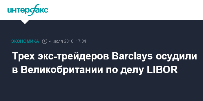Москва. 4 июля. INTERFAX.RU - Коронный суд Сазерка (Лондон) в понедельник признал трех бывших сотрудников Barclays Plc виновными в сговоре с целью манипулирования Лондонской межбанковской ставкой предложения (LIBOR), говорится в пресс-релизе британского Бюро по борьбе с мошенничеством в особо крупном размере (Serious Fraud Office, SFO).