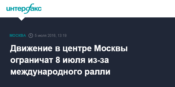 Движение в центре Москвы ограничат 8 июля из-за международного ралли