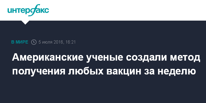 Москва. 5 июля. INTERFAX.RU - Американские исследователи описали новый подход к созданию вакцин. Используя РНК патогена и наночастицы, препарат против новой инфекции можно получить за неделю — и подготовить иммунитет ко встрече с болезнью, сообщает сайт N+1 со ссылкой на журнал Proceedings of the National Academy of Sciences.