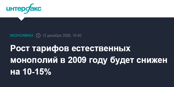 Рост тарифов естественных монополий в 2009 году будет снижен на 10-15%