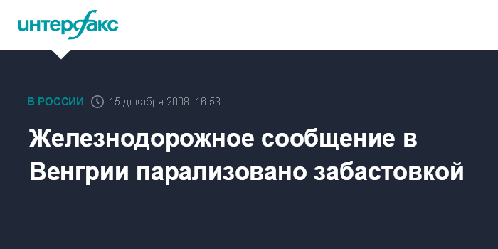 Москва. 15 декабря. INTERFAX.RU - Забастовка работников государственного железнодорожного предприятия парализовала в понедельник железнодорожное сообщение в Венгрии и отрицательно повлияла на международное железнодорожное сообщение, сообщило агентство ЭФЭ.