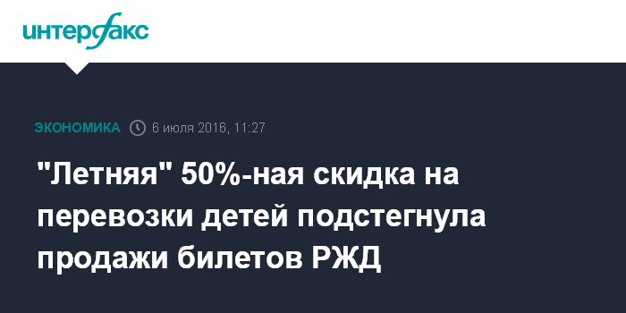 "Летняя" 50%-ная скидка на перевозки детей подстегнула продажи билетов РЖД