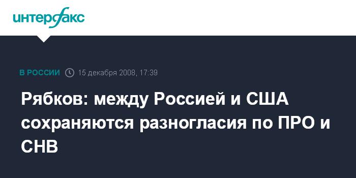 Москва. 15 декабря. INTERFAX.RU - Между Россией и США сохраняются серьезные расхождения по проблематике противоракетной обороны и сокращению наступательных вооружений. "По обеим темам серьезные расхождения сохраняются", - заявил замглавы МИД РФ Сергей Рябков по итогам российско-американских консультаций в Москве в понедельник.