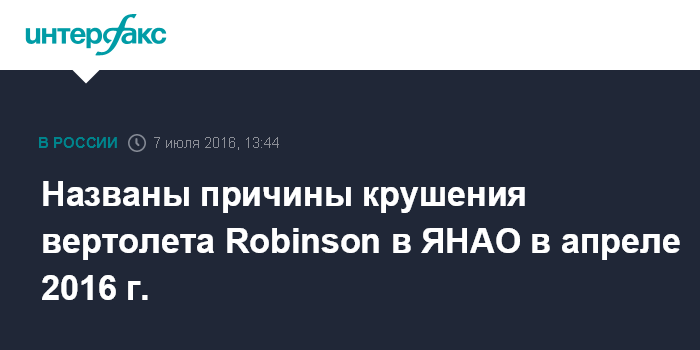 Названы причины крушения вертолета Robinson в ЯНАО в апреле 2016 г.