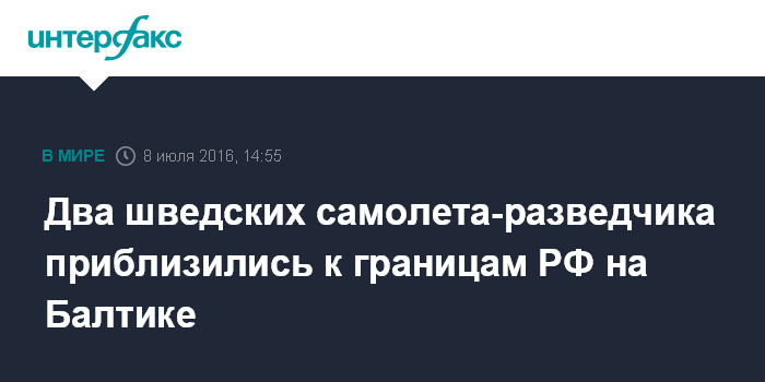 Как сообщалось, самолеты-разведчики США и Швеции в последнее время значительно увеличили количество разведывательных полетов вдоль российских рубежей на Балтике.