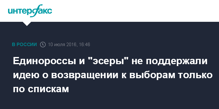 Москва. 10 июля. INTERFAX.RU - Представители руководства "Единой России" и "Справедливой России" не поддержали предложение лидера КПРФ Геннадии Зюганова возвратиться к выборам исключительно по партийным спискам.