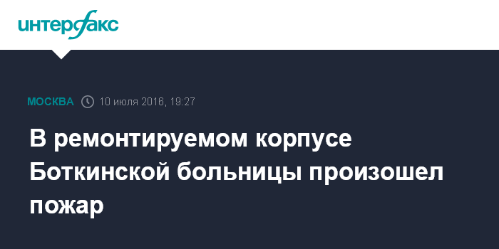 Москва. 10 июля. INTERFAX.RU - Возгорание произошло в ремонтируемом корпусе Боткинской больницы в Москве, сообщил "Интерфаксу" источник в экстренных службах столицы.